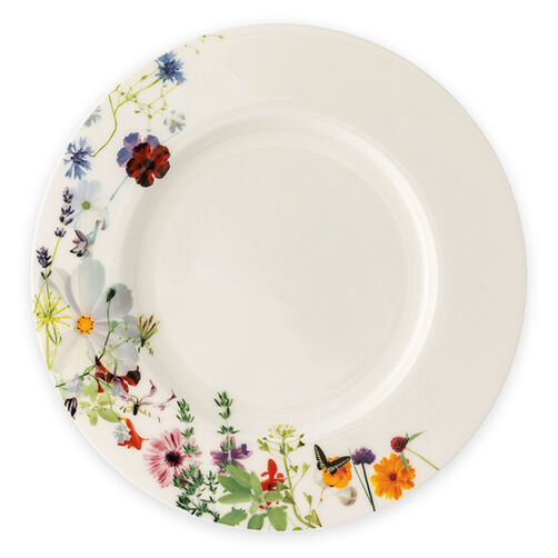 Wie vom Winde verweht und von der Natur zu einem vielfarbigen Blumenensemble kombiniert, verbinden sich würzige Kräuter und essbare Blüten in kleinen Bündeln arrangiert, lose hingestreut oder kreisförmig zu Ornamenten angeordnet, auf der Form Brillance und verschmelzen mit ihr zu einer sinnlichen Einheit.