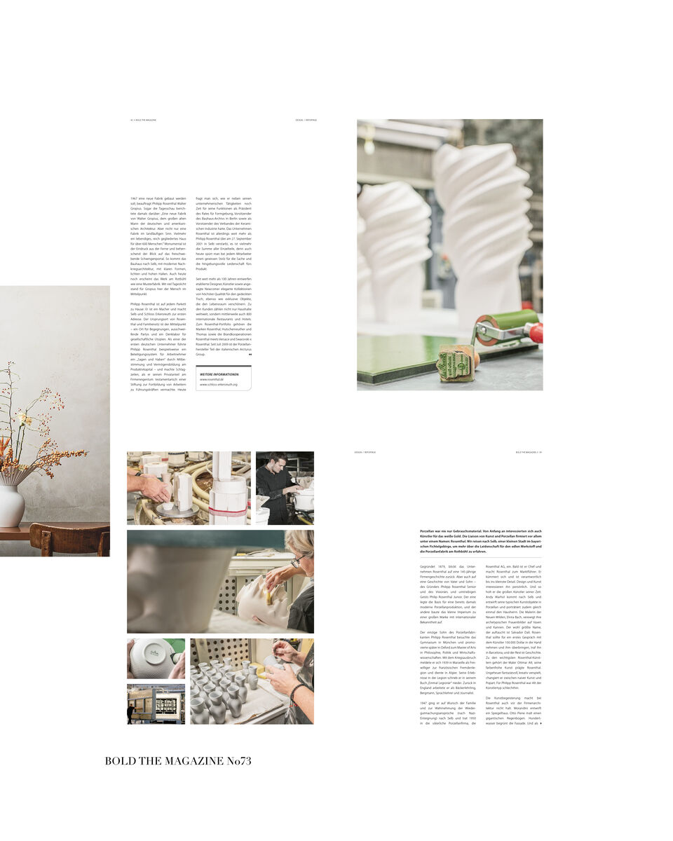 Rosenthal bereichert seit langem das Esserlebnis durch die Verbindung von Design, Funktionalität und Kochkunst. Das Geschirr von Rosenthal dient nicht nur zum Servieren von Speisen, sondern bildet auch den Rahmen für unvergessliche Mahlzeiten, die sowohl in Privathaushalten als auch in der gehobenen Gastronomie zu einem außergewöhnlichen Ereignis werden. Die Kollektionen von Rosenthal werden für ihre Qualität, ihr innovatives Design und ihre Langlebigkeit gefeiert und genießen das Vertrauen von rund 800 internationalen Gastronomen und Hoteliers. Das Porzellan der Marke findet sich in den Küchen und Speisesälen von Weltklassehotels und Restaurants wie Rosewood München, Hôtel Fouquet's Paris, Ritz-Carlton Nomad New York, The Cord Berlin, The Peninsula Hong Kong und The Royal Atlantis Dubai. Spitzenköche in Lokalen wie Stanglwirt Kitzbühel, Oblix at The Shard London und Käfer Berlin servieren ihre Gerichte auf Rosenthal-Porzellan. Mit zeitlosem Design, das Schönheit und Funktion vereint, definiert Rosenthal die gehobene Gastronomie in der globalen Hotellerie neu.