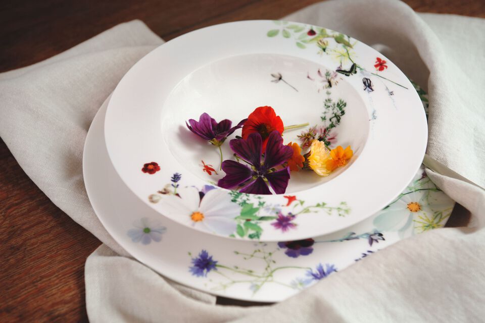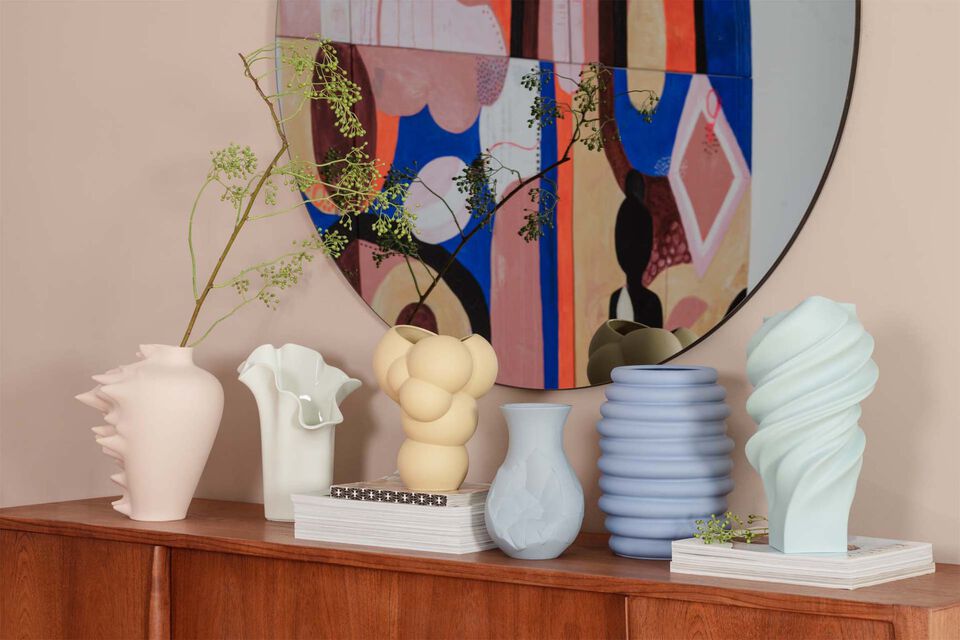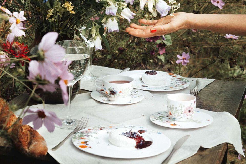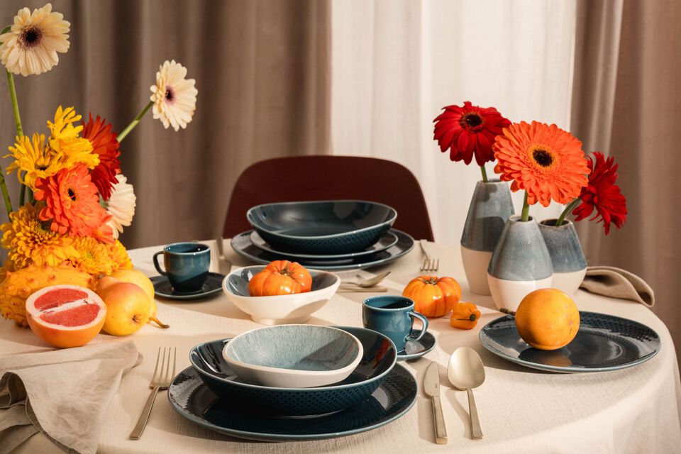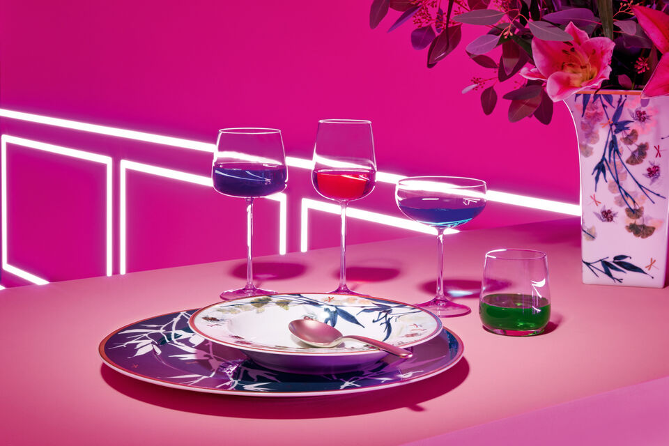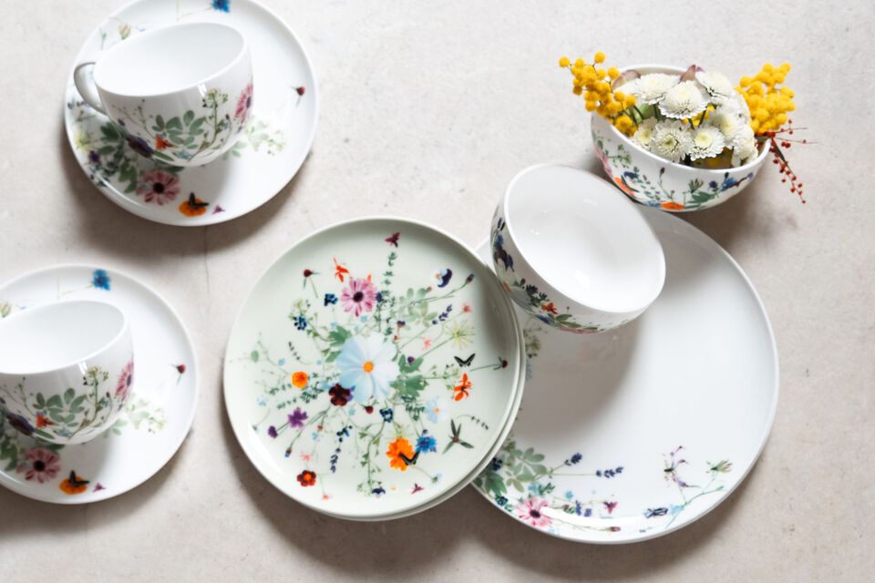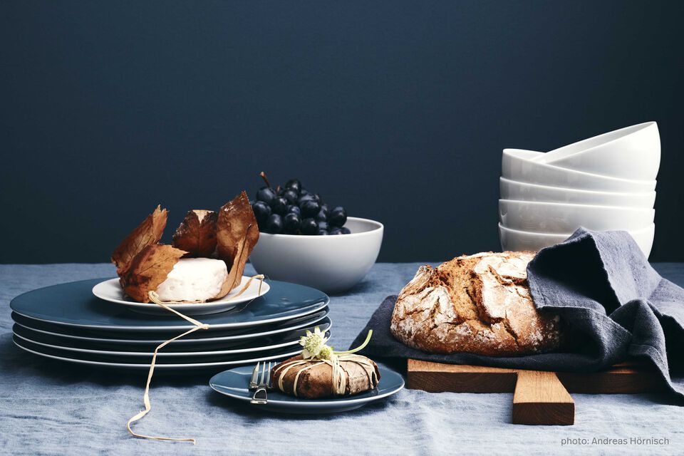 Zartes Porzellan trifft auf robustes Steinzeug, Goldakzente veredeln weiße Glasuren, und Schalen aus geschleudertem Glas sorgen für eine poetische Note.