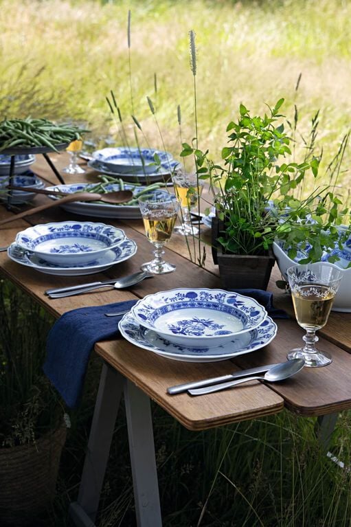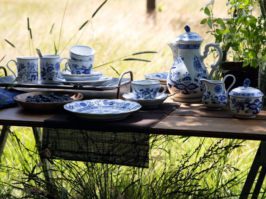 Hutschenreuther has marked its bicentenary by reissuing the popular blue onion pattern. This pattern has been produced since 1730 and is based on oriental patterns. It has been a fundamental part of wealthy households since the mid-19th century. The pattern became commonly known as “Blue Onion” due to an inability to recognise the real motifs in the onion pattern. In fact, this pattern does not contain any onions at all - it contains pomegranates, peaches, peonies and a bouquet of asters and bamboo - symbols of fertility, wealth and immortality. The fine arrangement of the details has been a distinguishing feature of the Hutschenreuther blue onion pattern since 1930. The timeless pattern meets the requirements of a modern household, and encourages the desire for a lavishly laid table because of its variety of pieces.