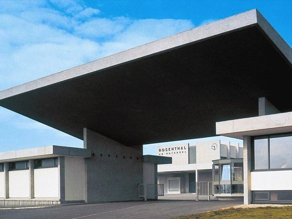 Rosenthal purchased the F. Thomas porcelain factory which had been founded in 1904 in Marktredwitz. In 1960, production moved to the newly built "Thomas am Kulm" factory in Speichersdorf. The factory’s façade with its geometrical patterns was designed by the Italian architect, Marcello Morandini.