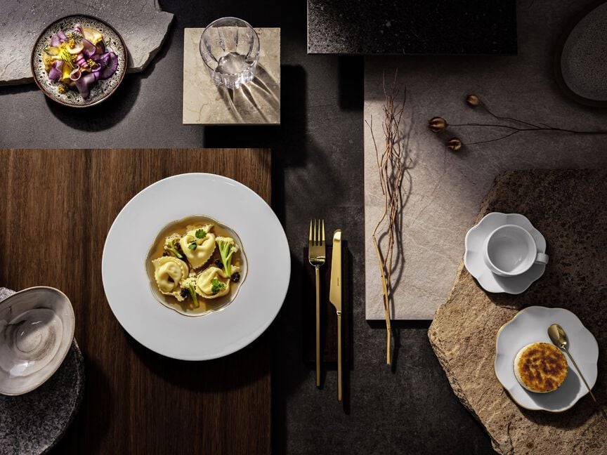 At Ambiente trade fair, Rosenthal debuts the Sonetto collection, elevating casual fine dining to a whole new level. Sonetto, Italian for "sonnet," stands for the oldest form of Italian poetry – a melodious composition. Inspired by this tradition, the collection blends organic and floral forms with a variety of materials. Culinary delights can be elegantly presented across multiple levels, while the collection captivates not only with its exquisite porcelain but also with the seamless interplay of stoneware and glass.