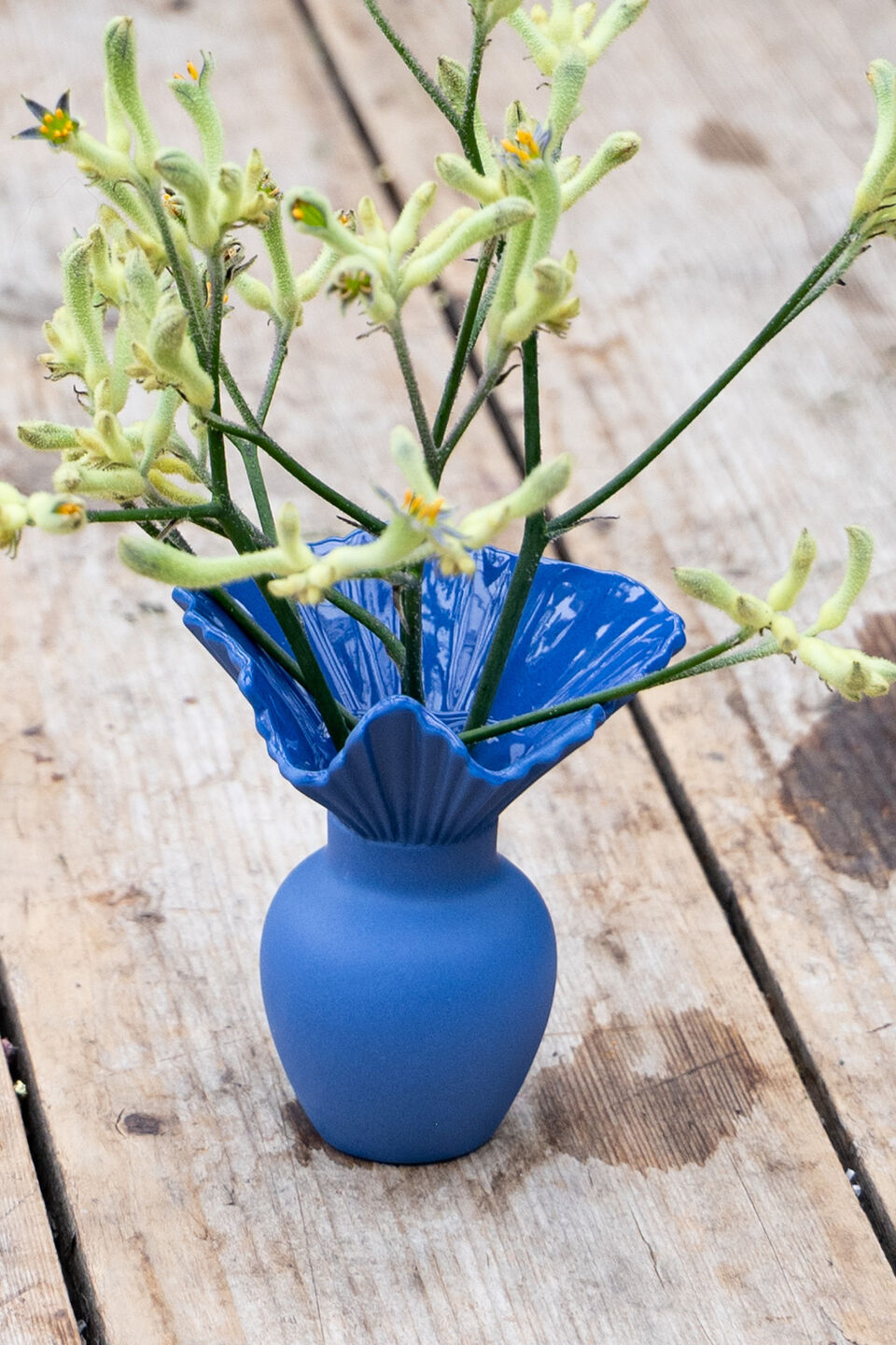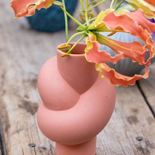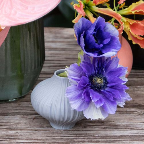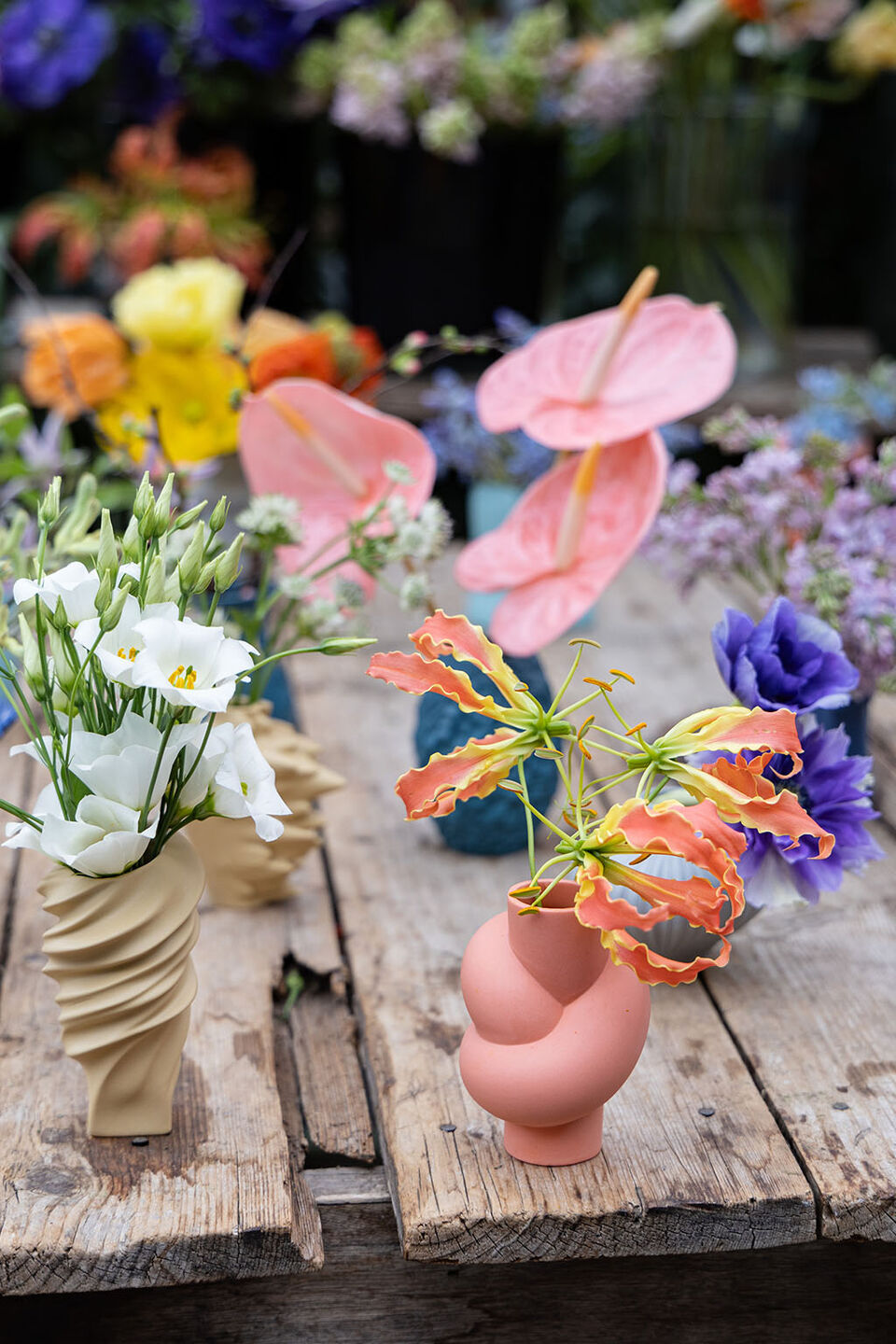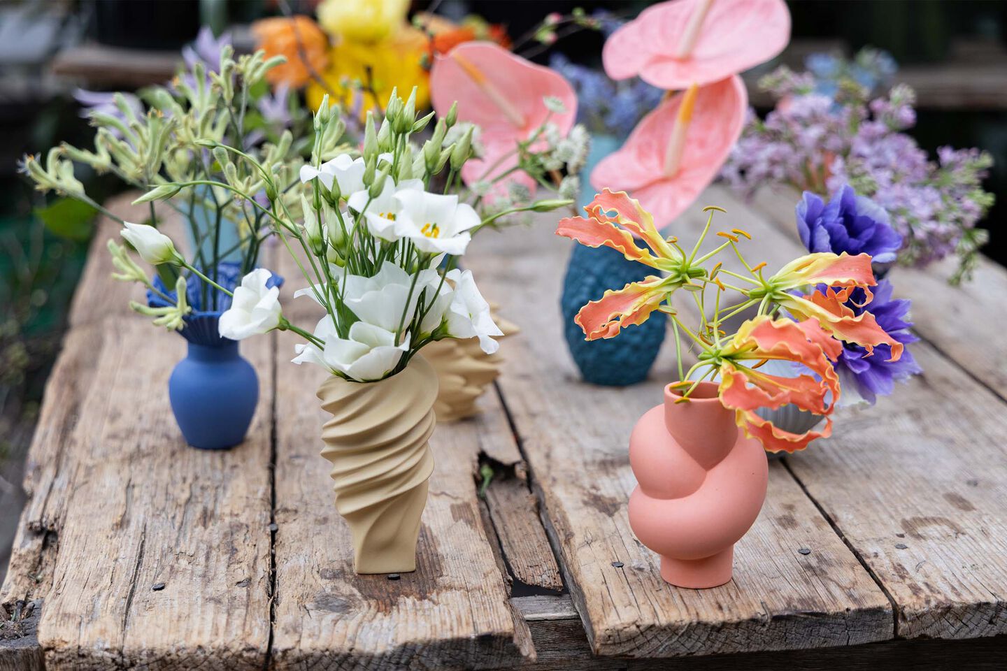 In 2024, the Mini Vases+ will be available in six new colours and are modelled exactly on their large vase counterparts, which were created in collaboration with renowned contemporary designers. In other words, the little ones have picked up on the surprising shapes and structures of their big siblings.