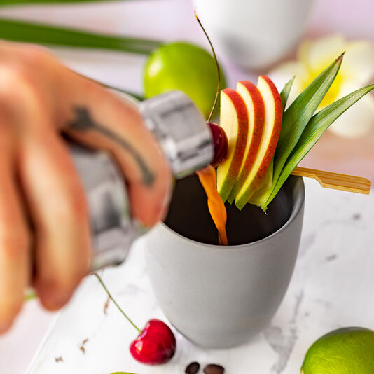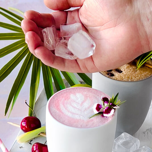 An iced espresso martini, served in an elegant The Mug+, combines cool refreshment with a strong coffee flavour. Perfect for hot days and balmy evenings.