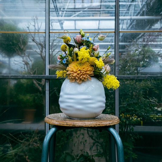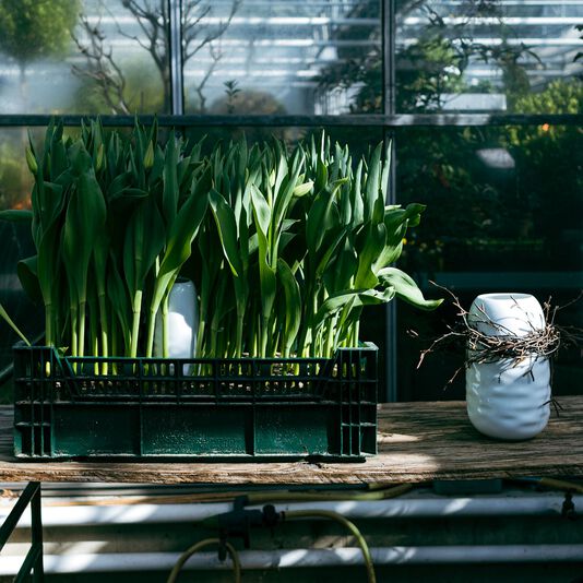 Why use a vase only for fresh flowers? Anna asked herself this question and transformed our Vesi directly into a plant pot. Especially in spring, bulbous flowers lend themselves well to being used indoors - "as the first messengers of spring", says Anna. Moss to cover the soil or small decorative elements can be added as desired. A clear advantage: the plants in the vase last much longer than cut flowers.