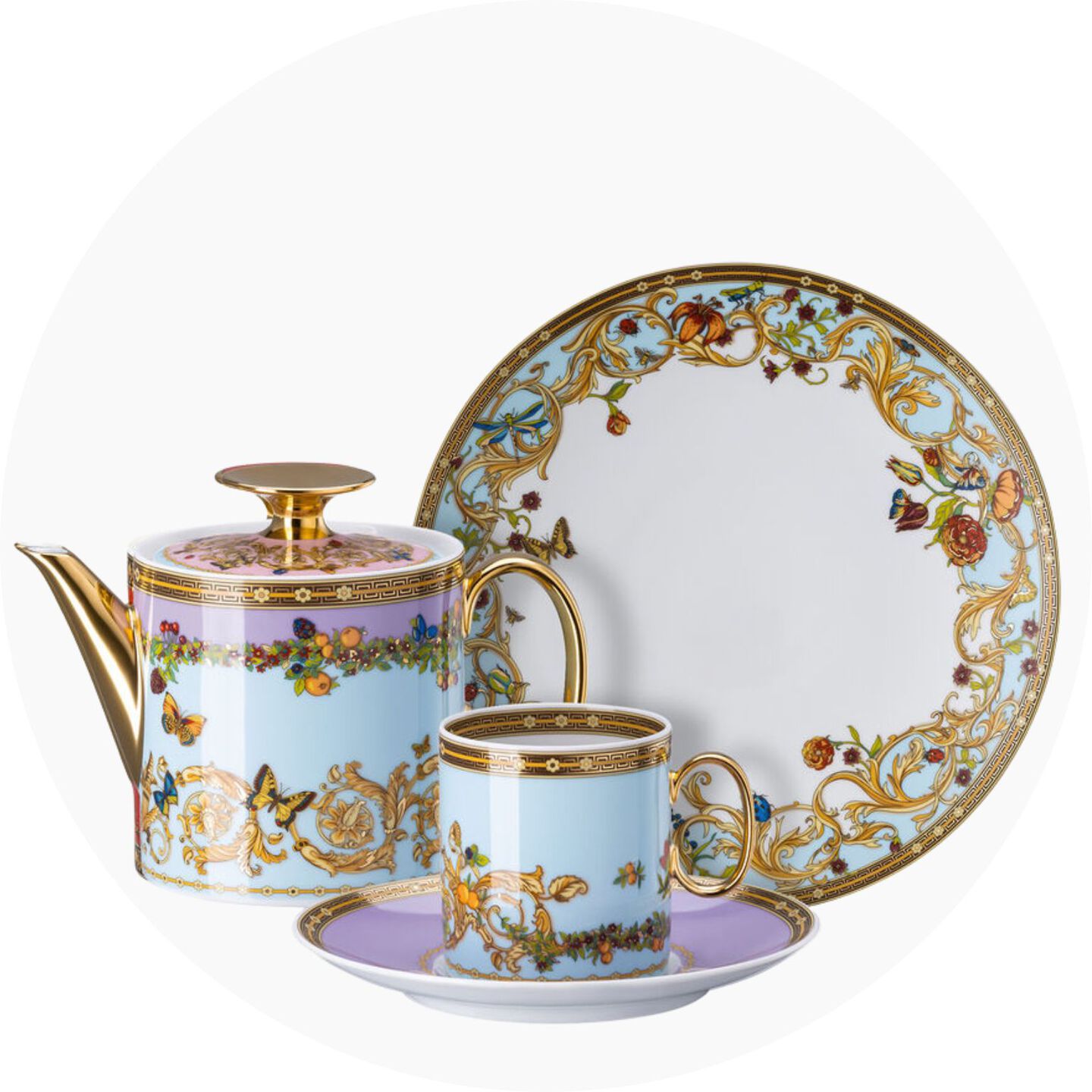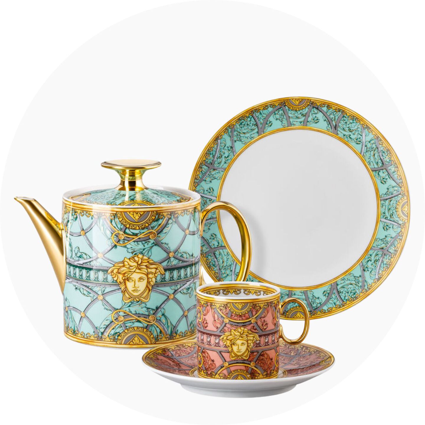 En plongeant à la recherche de trésors cachés, en flânant dans des jardins enchanteurs ou en admirant les objets d’art les plus célèbres de la cour du Tsar, Versace et Rosenthal évoquent, par l’entremise de leurs articles d’art de la table décorés, chargés de mythes, de symbolisme et de références antiques, une variété de scénarios imaginaires. Pour la création de ces univers oniriques empreints du plus grand luxe, Versace a fait appel aux plus fins articles en porcelaine, en cristal et de coutellerie de Rosenthal. Ces matériaux nobles sont habilement transformés en articles uniques. Célèbre pour son habileté à allier éléments historiques et ultramodernes, Versace propose ainsi des collections où intemporalité se mêle avec brio aux tendances les plus contemporaines. Son association avec Rosenthal illustre parfaitement cette esthétique unique.